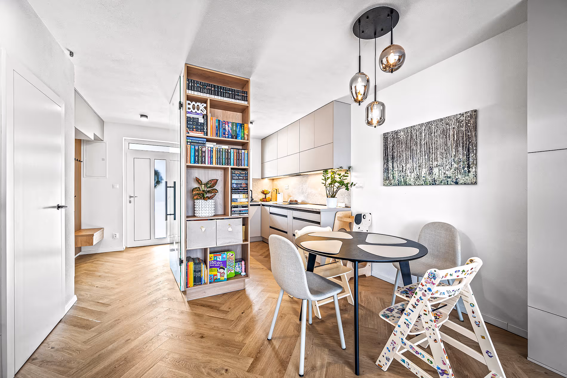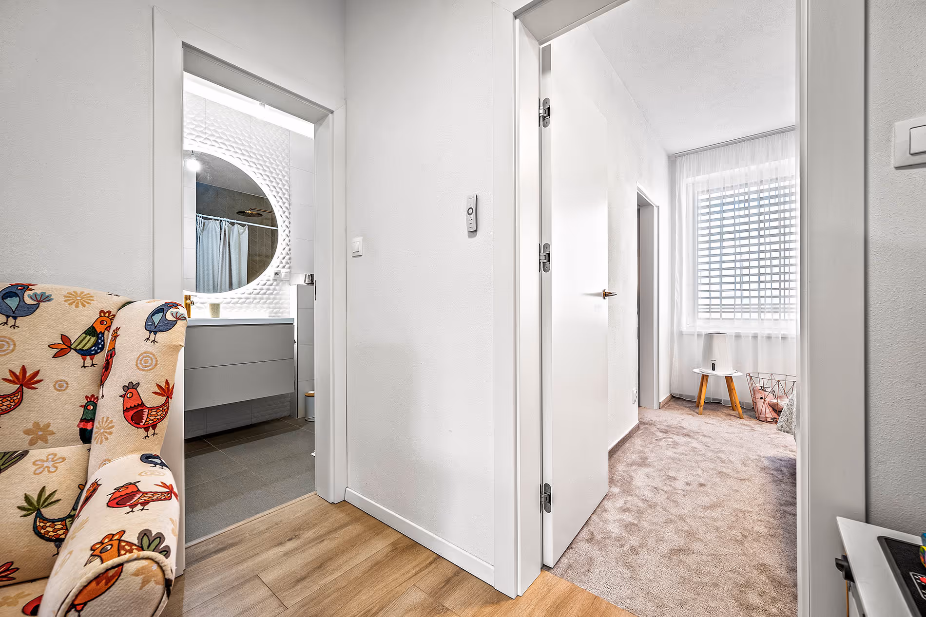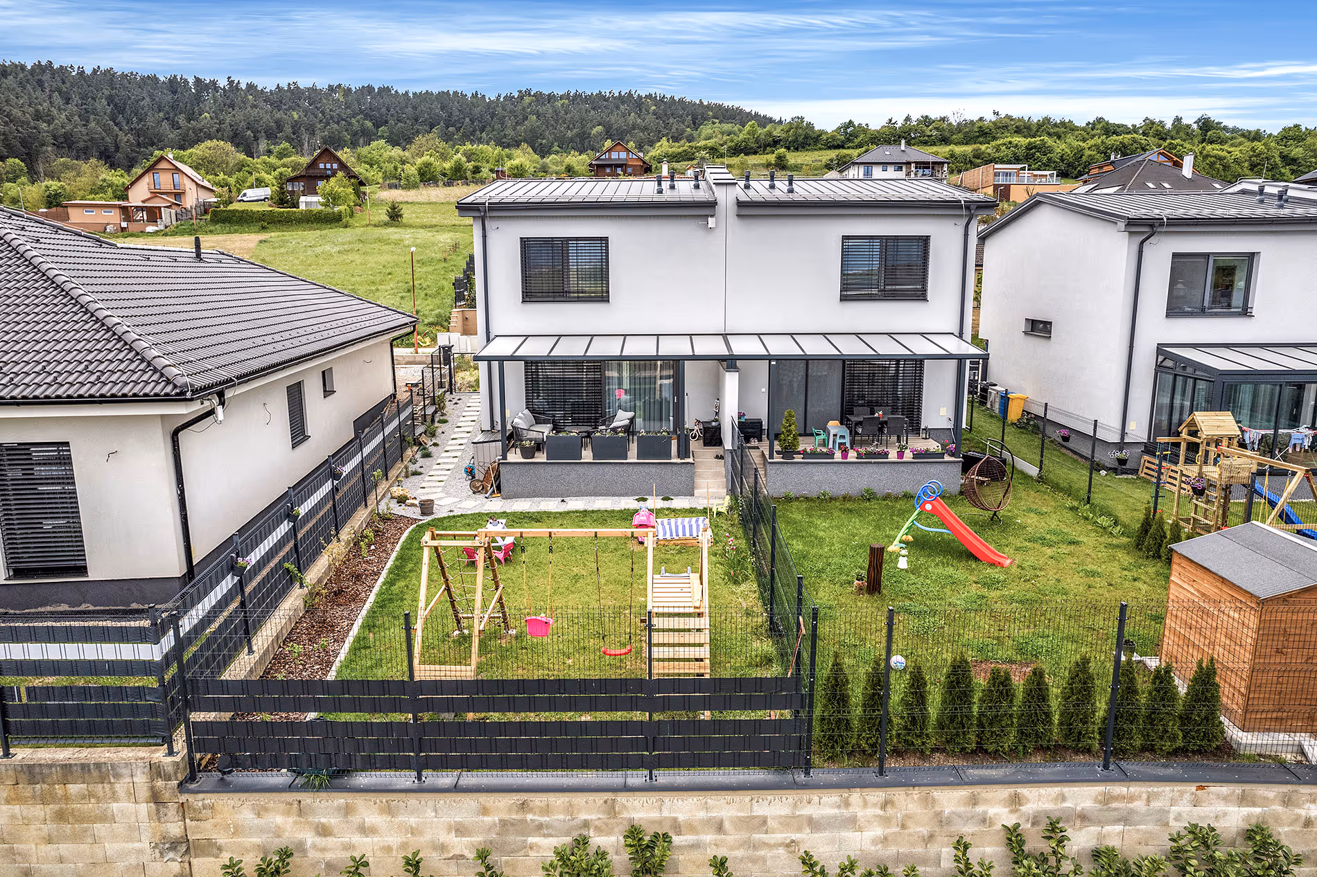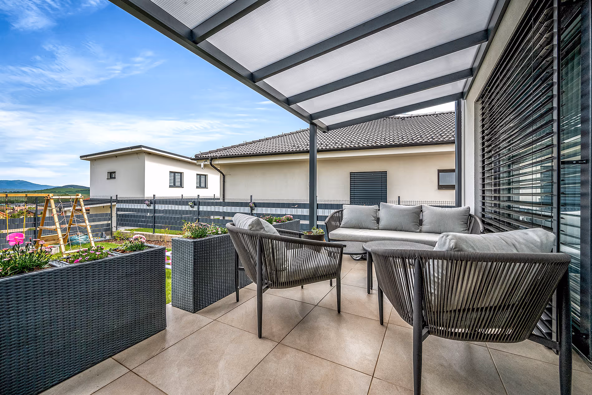 Tento moderný rodinný dom bol navrhnutý tak, aby poskytoval maximálny komfort a úsporu energie. Skladá sa z priestrannej obývacej izby, kuchyne s jedálenským kútom, 3 izieb, 1 kúpeľne vrátane WC, 1 samostatného WC, priestranného šatníka, technickej miestnosti a úložného priestoru. Dom je vybavený kvalitnými nadštandardnými materiálmi, zastrešenou terasou, vonkajšími exteriérovými žalúziami a upravenou záhradou, čo vám zaručuje pokojné bývanie bez dodatočných nákladov.